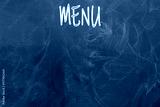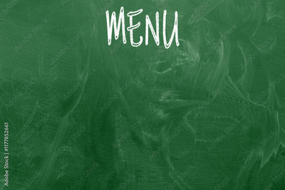 Empty menu board stand and outdoor cafe chalkboard with menu.