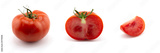 Group tomato has water drop with slices and flower isolated on white background, clipping path.