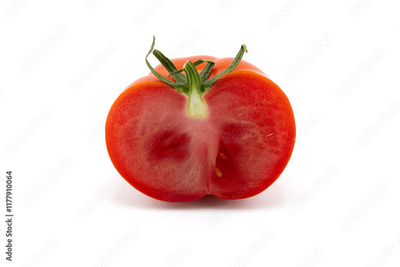 Group tomato has water drop with slices and flower isolated on white background, clipping path.