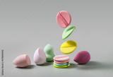 Vibrantly Colorful Makeup Sponges and Stylish Cosmetic Discs Resting on a Gray Background