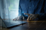 Businessman utilizes Business Intelligence for Data Management, Data Visualization, and Data Analysis to make strategic business decisions.