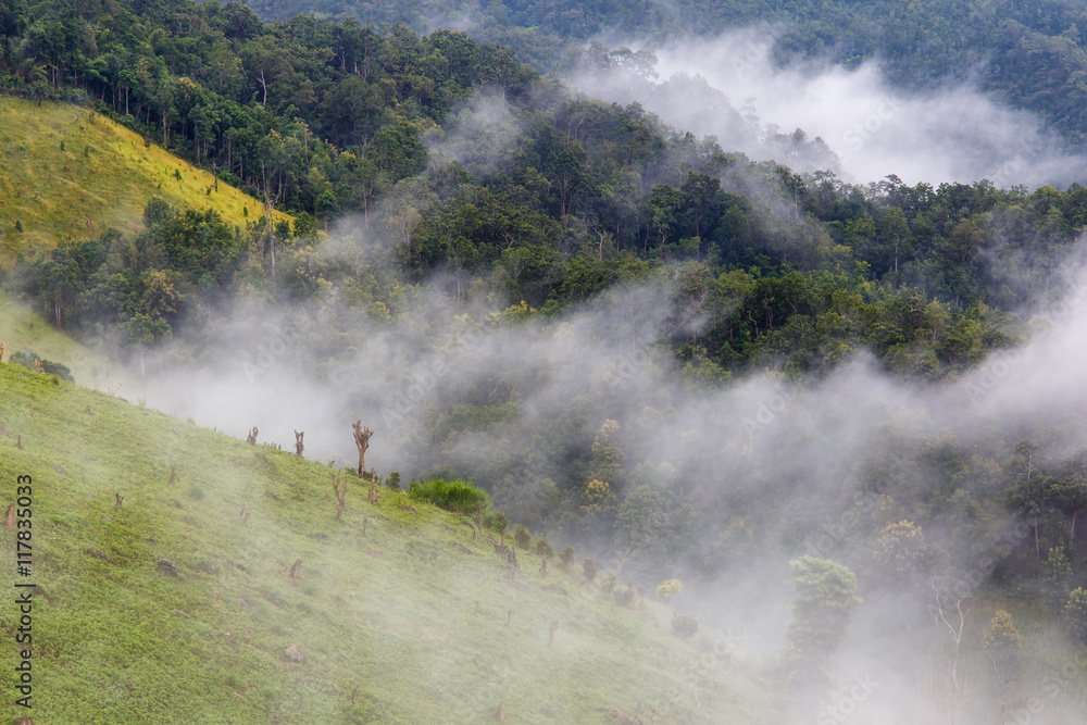 Sunrise at mountain with fog in Mae La Noi, Maehongson Province, Thailand