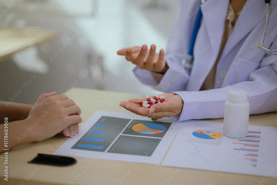 Nutritionist giving consultation to patient with healthy fruit and vegetable, Right nutrition and diet concept