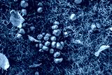 Close up of fungus with fallen yellow leaves in grass.