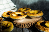 Stack of portuguese egg tart, homemade egg tart dessert. Traditional Portuguese dessert