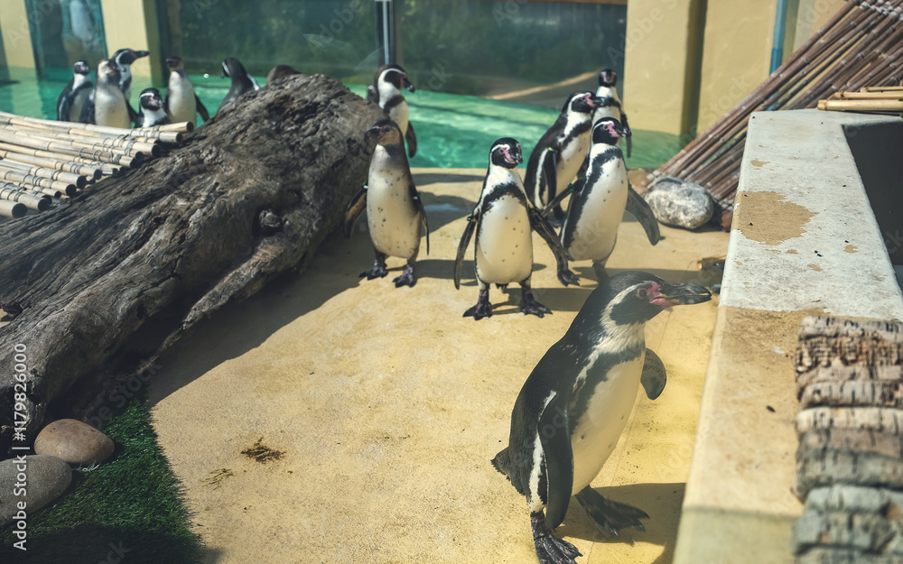 Penguins wait to be fed at the zoo.