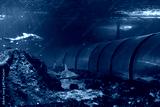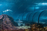 Underwater world with fishes and sharks.