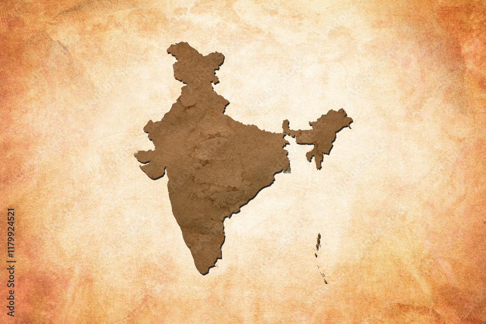 Map of india on a old ancient vintage crack paper background. India Independence Day 15th of August.