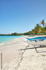 Beautiful beach with bangka boats on Malapascua Island, Philippines.