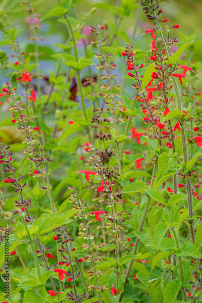 Flowers of pineapple sage or tangerine sage (Salvia elegans)
