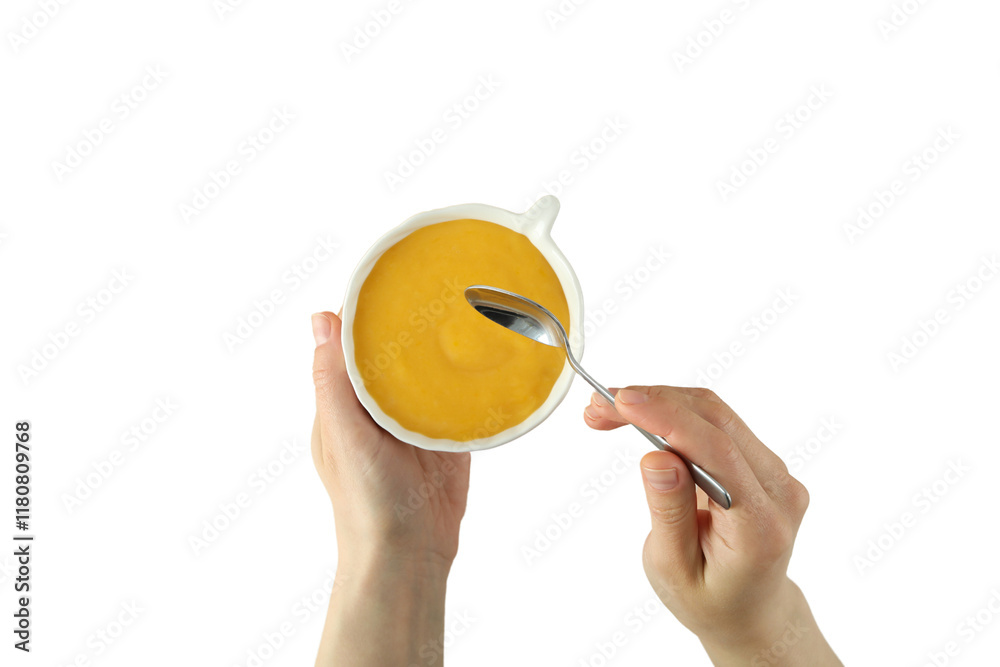 PNG, Lemon curd, cream in ceramic white bowl, isolated on white background.