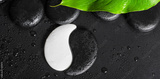 top view of beautiful spa setting Yin-Yang stone texture, green