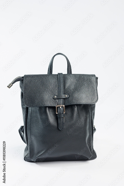 Black backpack women's bag, women's backpack, gray women's backpack. Women's bag isolated on white background. The bag is isolated on a white background.
