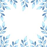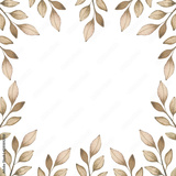 Square watercolor frame for your design with brown abstract twigs.Autumnal frame with watercolor leaves. Fall season background. Greeting card or invitation