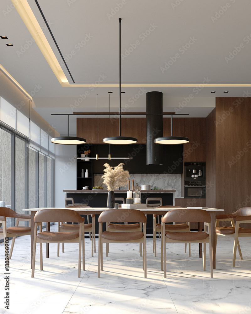 modern home living room, 3d render