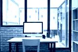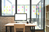 Modern workspace with computer monitor and office supplies