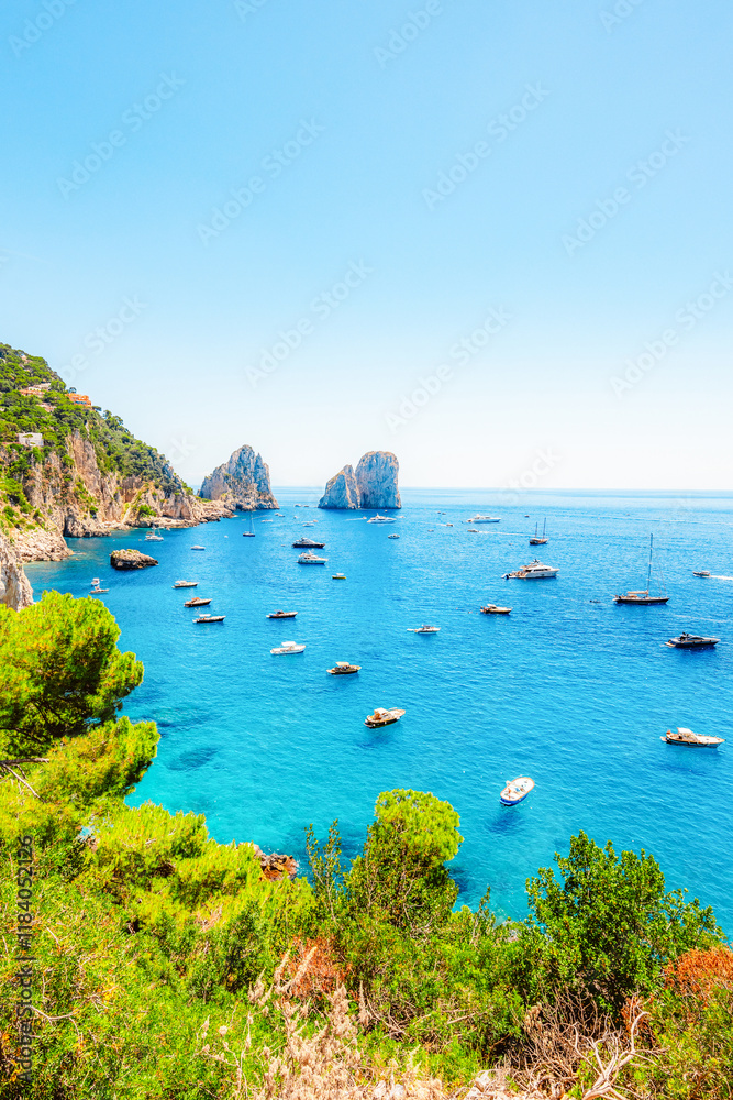Via Krupp on Capri island in Italy. Faraglioni Rocks, Marina Piccola and Monte Solaro on Capri Island, Italy