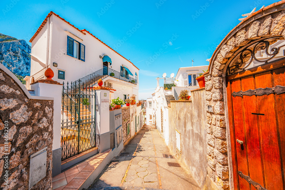 Tourists at Street, cafes, shops on Capri Island, Italy
