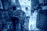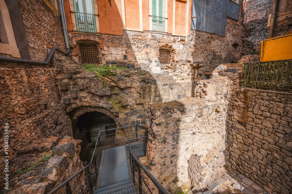 Ancient Roman theater in Catania, SIcily, Italy. Built from the limestone and black lava.