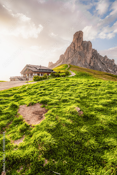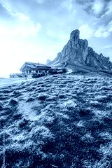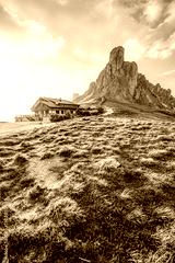 Ra Gusela Peak of Nuvolau group in the Italian Dolomites mountain at Giau Pass in South Tyrol Italy.