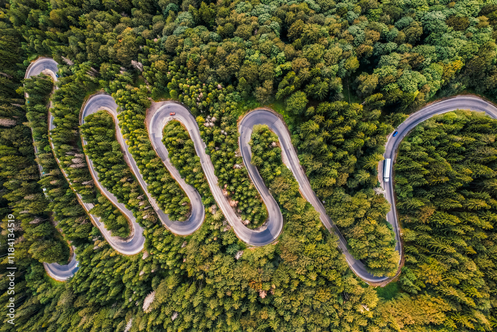 Cheia road Brasov. Aerial view of a serpent mountains road Romania, in the heart of Transylvania