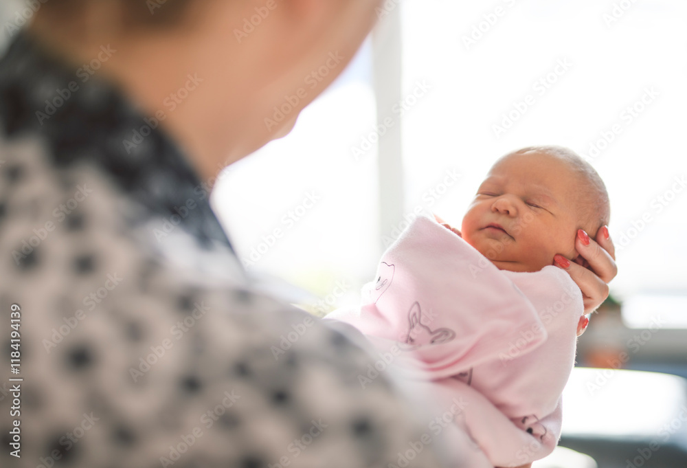 Happy lesbian woman with their little newbaby at home