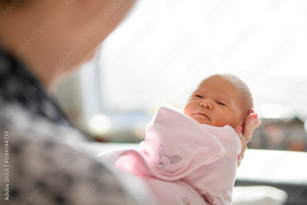 Happy lesbian woman with their little newbaby at home