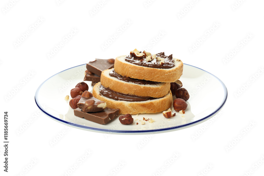 PNG, Bread with chocolate paste in a bowl, isolated on white background