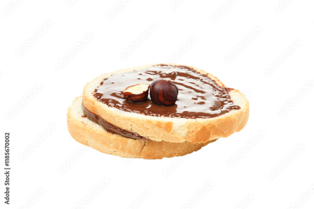 PNG, Bread with chocolate paste and nuts, isolated on white background
