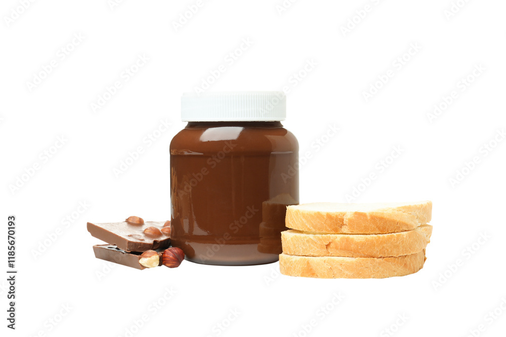 PNG,Chocolate paste in a jar with bread, isolated on white background