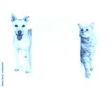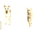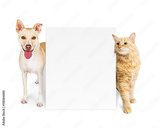 Orange Cat and Dog Behind Blank Sign