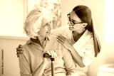 Young woman helping senior