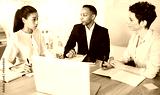 Three dynamic entrepreneurs meeting to potentially collaborate and work together on perspective projects with the possibility of becoming partners in the future.