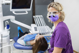 Dentist Wearing Loupes While Examining Young Patient In Clinic