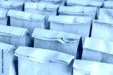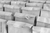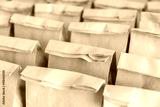 Brown paper bags on table .