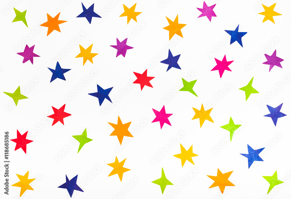 top view of various stars cut out from color paper