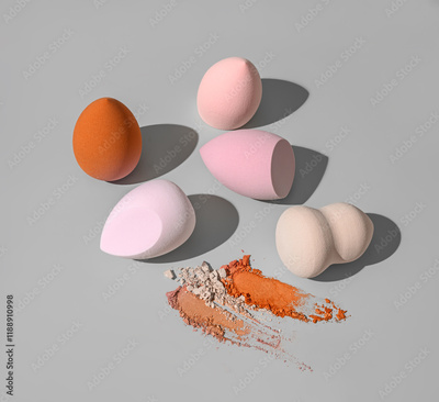 Colorful Makeup Sponges and Various makeup shadows swatches for Beauty and Artistry