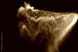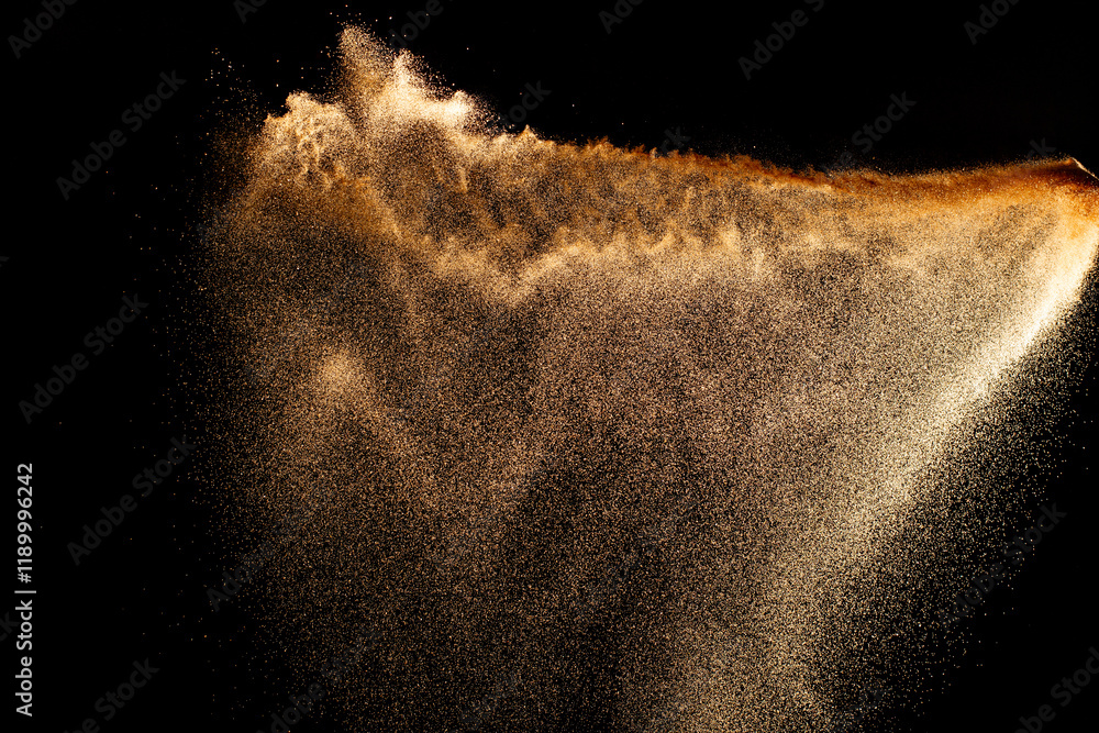 Sand flying explosion isolated on black background ,throwing freeze stop motion object design.
