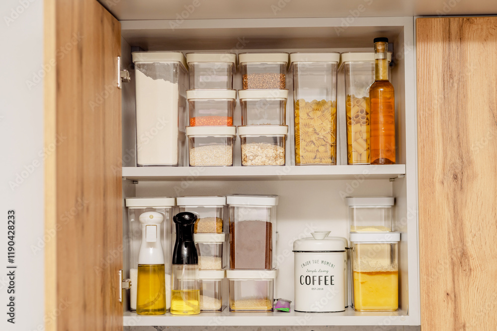 Organization of space in the kitchen cabinet. Organizers for loose products.