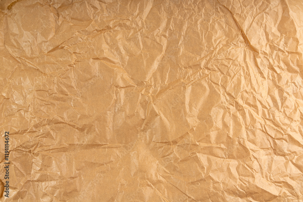 Crumpled Craft Paper, Rugged Wrapping Old Paper Texture, Empty Brown Wrinkled Sheet Scrap Top View