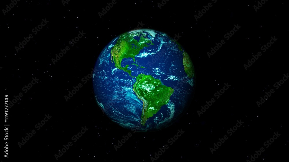 3d rotated zoom in realistic planet earth with star background