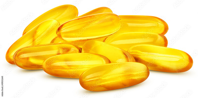 Fish oil capsules isolated on a white background