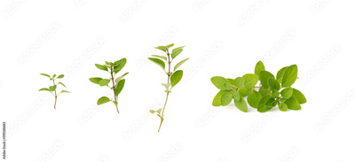 Fresh thyme twig isolated, fresh marjoram leaves, oregano sprig, green thyme seasoning leaf, thyme leaves