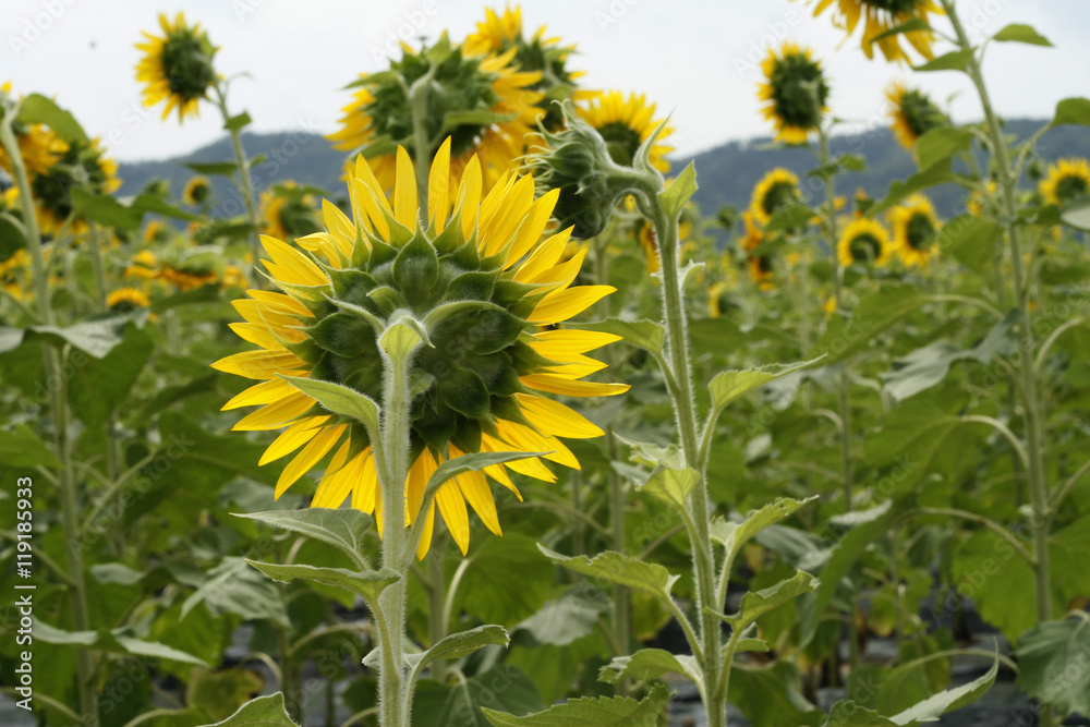 Background of sunflowers bloom in the field