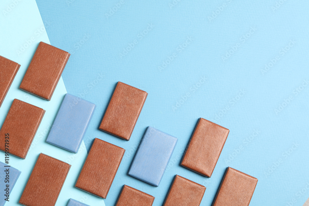 Blue and brown chocolate bars on a blue background