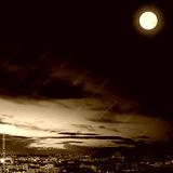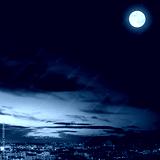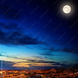 City landscape at nigh with moon. Elements of this image furnished by NASA.