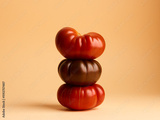 Sweet stacked tomatoes over beige background. Healthy food ingredient