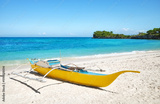 Bangka boat on a beach, Malapascua Island, Philippines.