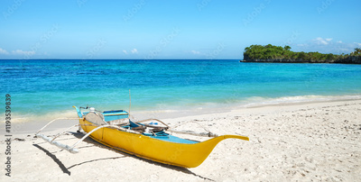 Bangka boat on a beach, Malapascua Island, Philippines.