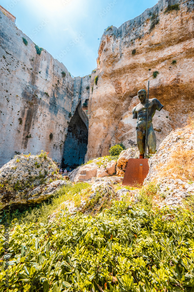 Greek theatre at Archaeological Park of Syracuse Sicily in the Neapolis archaeological park, Italy. Ear of Dionysius